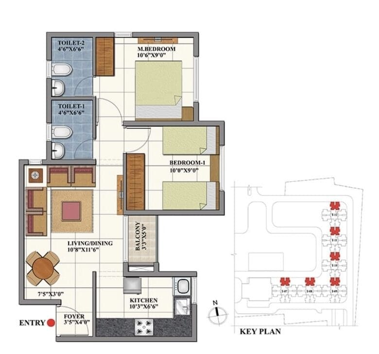 Shriram Solitaire, Veerasagara Main Road, village, Yelahanka New Town, Bengaluru, Karnataka, India, Bangalore Details2bhk Type 1 – Shriram Solitaire
