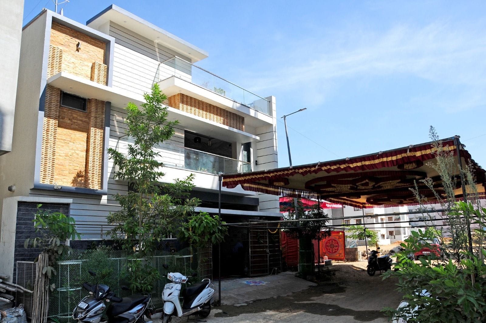- Features: Premium materials, Company Wire-cut Red Brick, Book Matching Orissa Granite, modern kitchen with imported Ukrainian slab and appliances.